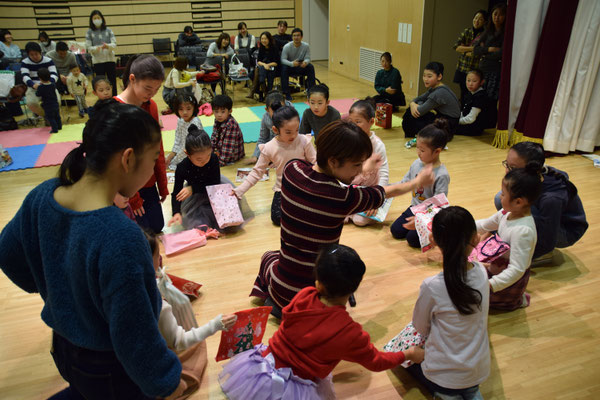 発表会の後はクリスマスお楽しみ会で見に来てくれたお友達も一緒に、じゃんけん大会、ビンゴゲーム、プレゼント交換を楽しみました!今年も暖かなクリスマス会となりました♫